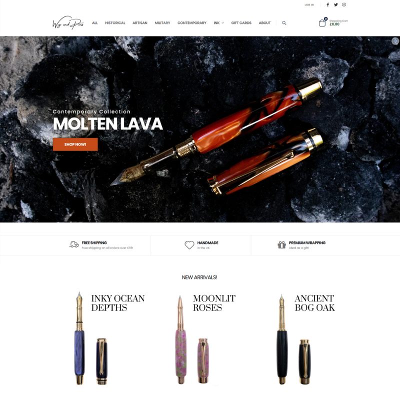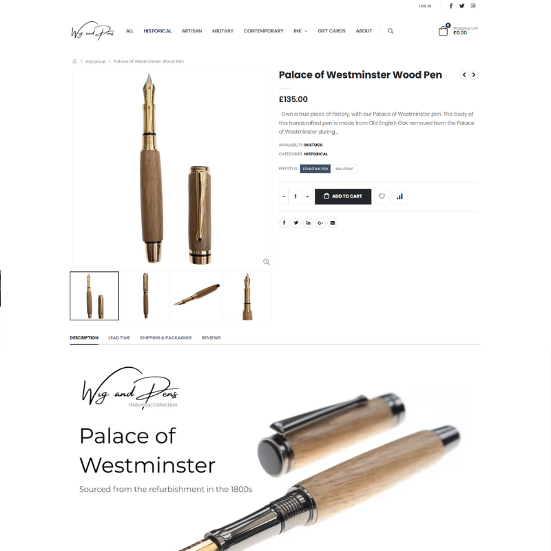 Wig and Pens | Newly established company selling luxury handmade pens. Wanted an Ecommerce website with full development and branding.